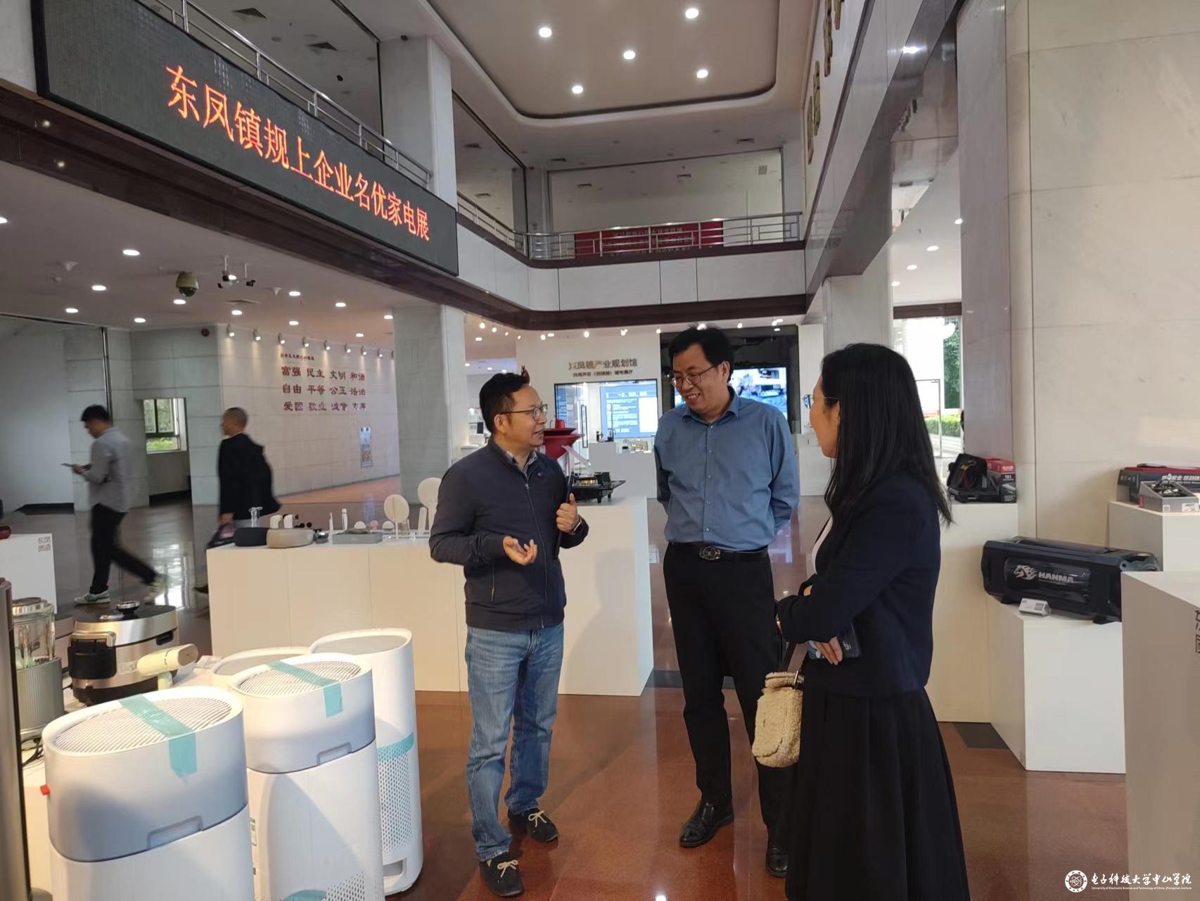 座谈会前,在邓宇华会长的陪同下,我院调研人员参观了东凤镇政府大堂常设的东凤镇规上企业名优家电展,深入了解企业发展实况。