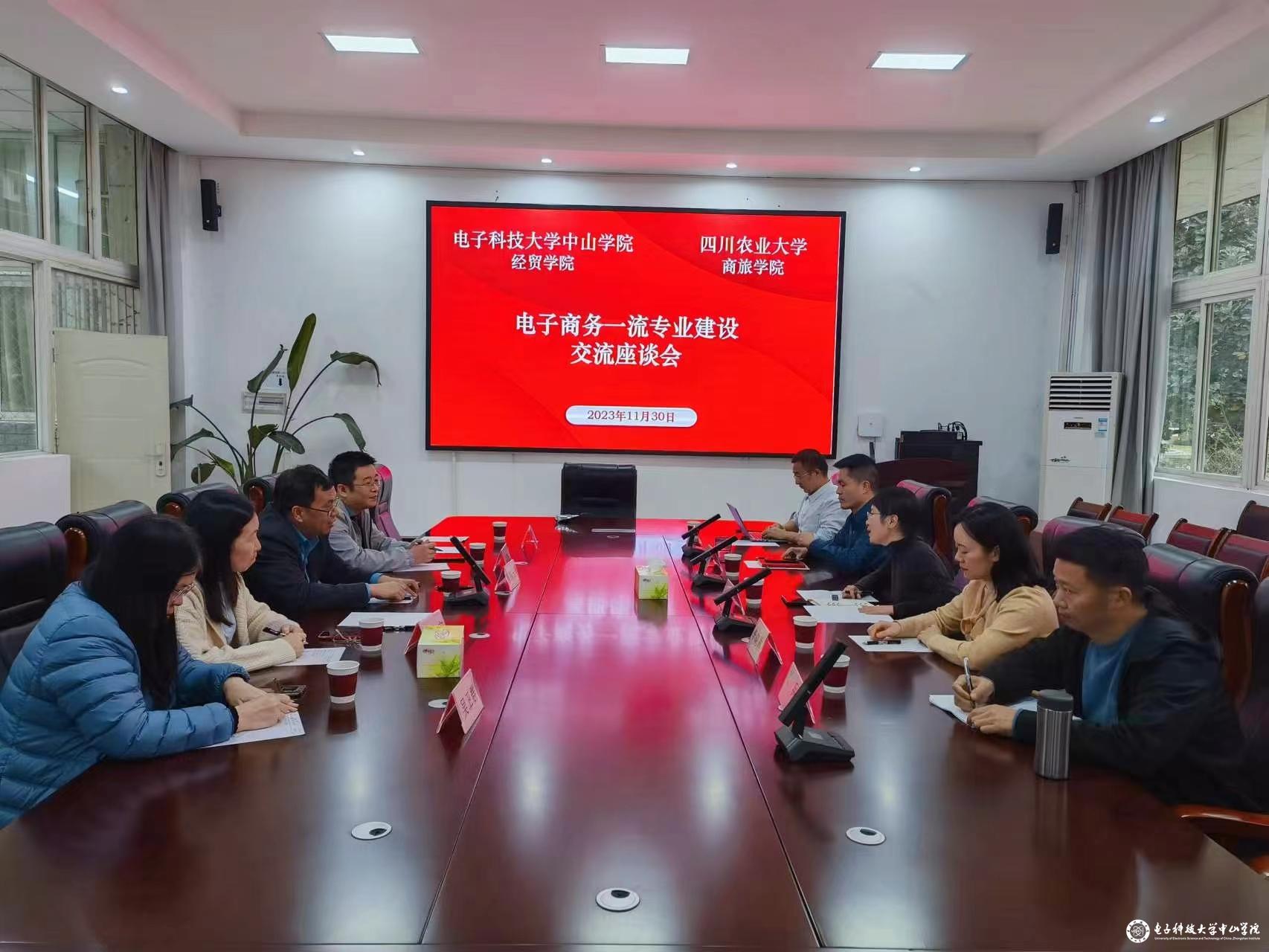 1130日下午,调研组一行来到四川农业大学商旅学院,与商旅学院党委书记郭凌,行政办主任付刚,电子商务系主任李晓林、副主任李良强、实验中心主任江兵等进行了座谈交流。